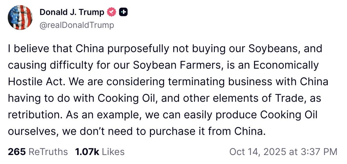 On the Trump and China front, things were relatively quiet. Trump said he and Xi have a great relationship but things just get tense sometimes. Ya don’t say. Towards the close, Trump put out a threat to China that the U.S. would no longer buy cooking oil from China if China stops buying our soybeans.