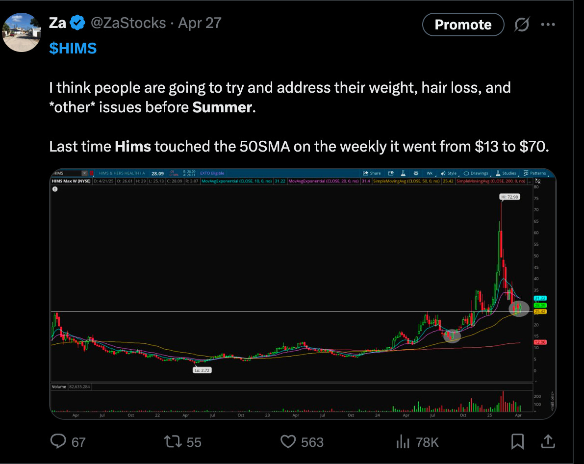You can see on the weekly, last time it touched the 50 week moving average it ripped hundreds of percent. I made almost 100% in just a few weeks! This was shortly after the tariff crash so we had the momentum of the market at our back as well.